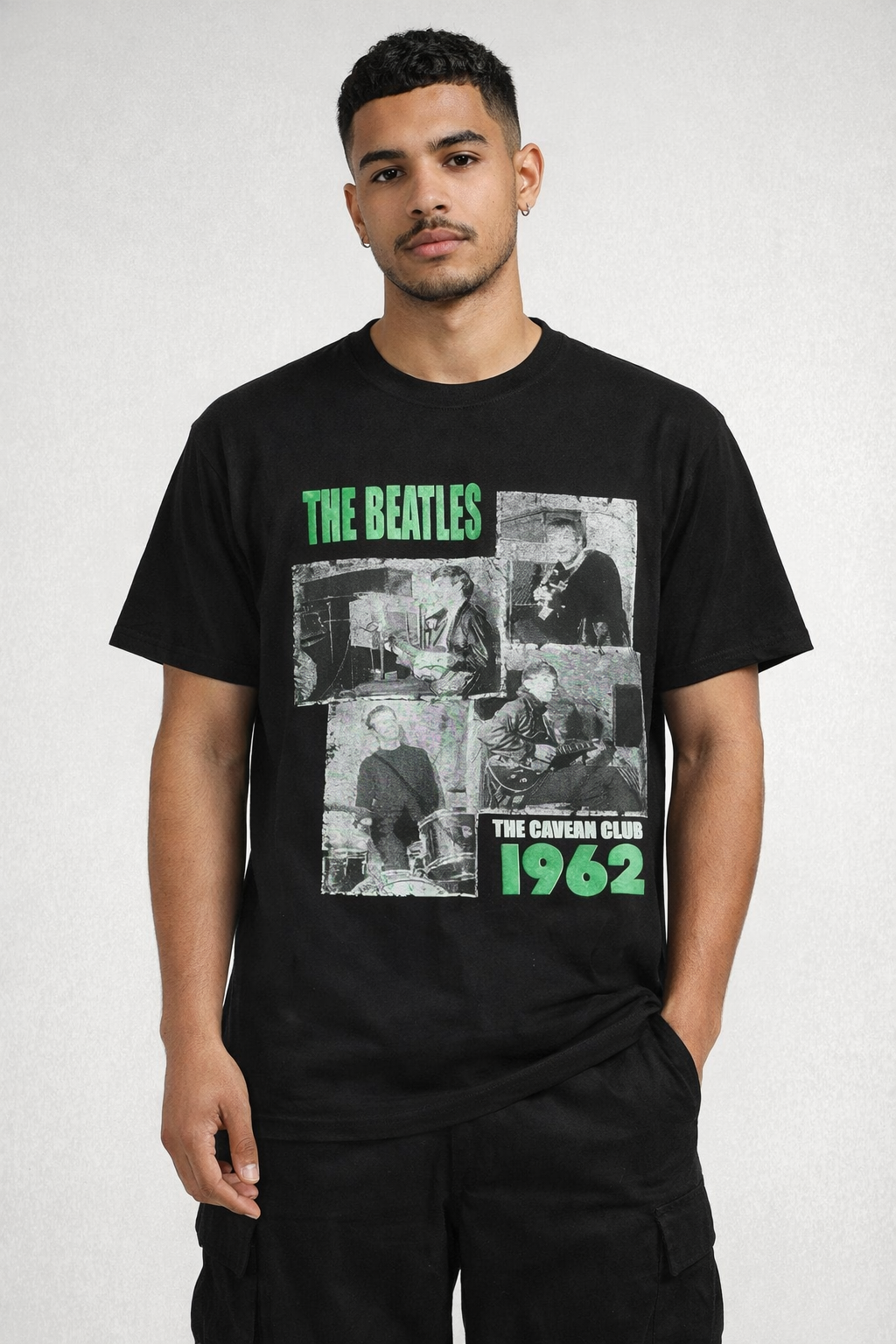 Step into music history with The Beatles “Cavern Club 1962” Graphic T-Shirt, a tribute to the legendary early days of the world’s most iconic band. Featuring a vintage-style collage of The Beatles’ performances at the famous Cavern Club, this tee captures the raw energy and timeless charm of their rise to fame.